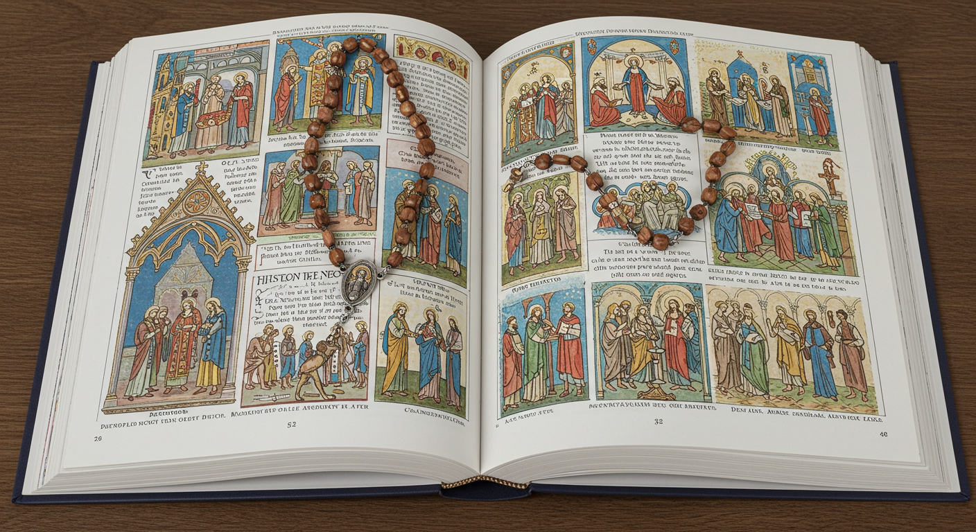 묵주기도는 가톨릭교회의 가장 대표적인 마리아 신심 기도로서 오랜 역사를 지니고 있습니다. 이 기도의 뿌리는 12세기 중세 유럽의 수도원 전통에서 찾을 수 있습니다. 당시 수도자들은 시편 150편을 모두 암송하는 관습이 있었으나, 글을 읽지 못하는 평신도와 수사들은 이를 실천하기 어려웠습니다. 이에 대한 대안으로 주님의 기도나 성모송을 150번 반복하는 방식이 생겨났습니다. 초기에는 단순히 기도문을 반복하는 형태였으나, 점차 예수 그리스도의 생애 주요 사건들을 묵상하는 요소가 결합되었습니다. 13세기 도미니코 수도회는 묵주기도 보급에 큰 역할을 했으며, 특히 성 도미니코가 묵주기도를 전파했다는 전승이 전해집니다. 당시 알비파 이단에 맞서 신앙을 수호하는 과정에서 묵주기도는 강력한 영적 무기로 인식되었습니다. 14세기와 15세기를 거치며 묵주기도는 유럽 전역으로 확산되었고, 특히 도미니코회 수도자들의 열정적인 전파 활동이 큰 영향을 미쳤습니다.
