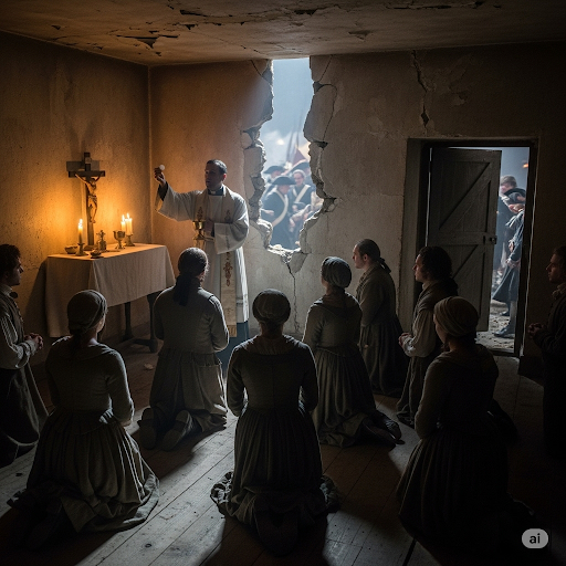 이런 상황에서 지하 교회가 탄생했어요! 마치 영화 속 저항군처럼, 비선서 성직자들은 몰래 숨어서 미사를 드리고 성사를 집행했죠. 신자들도 목숨을 걸고 이런 비밀 미사에 참석했어요.