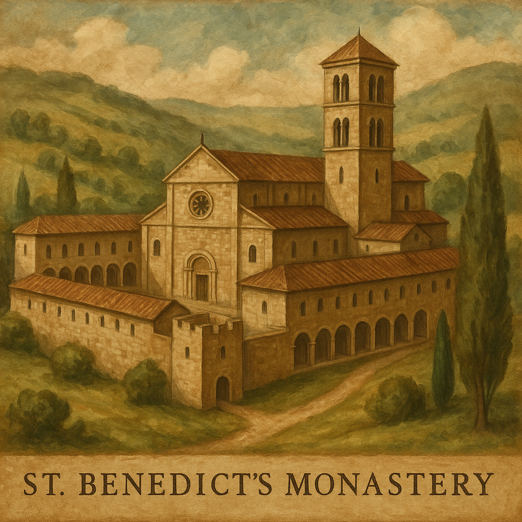 529년, 베네딕토는 몬테카시노 산에 첫 번째 수도원을 세웠어요. 여기서 그가 만든 게 바로 그 유명한 **「베네딕토 수도 규칙」**이죠!